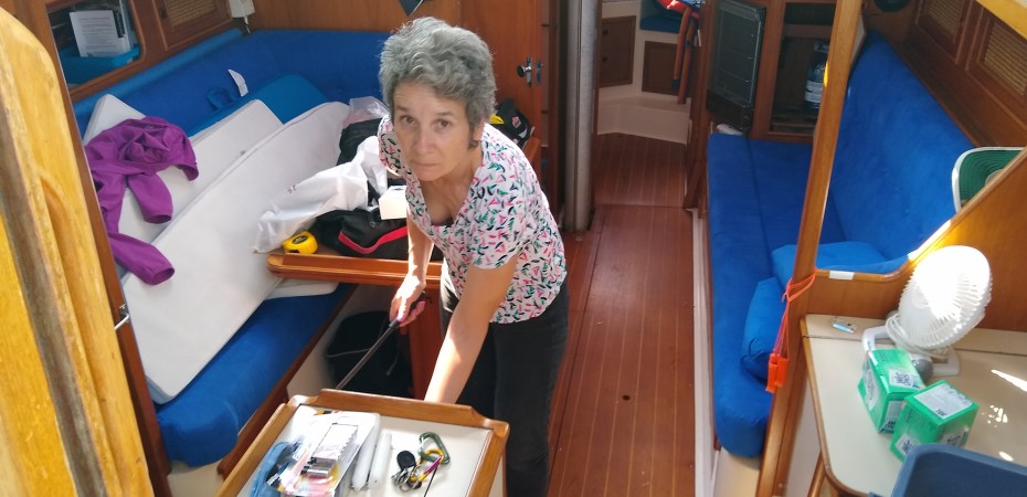 But even though I’ve learned to appreciate Kath’s thoroughness in abstract, I still wrestle with my baser instincts. I can feel my blood pressure rise with each muffin tin or bag of extra toothpaste tubes that come aboard. My impulse is to make it all to disappear immediately, damn the consequences. So, years of painful training have taught me that, at times like these, the best thing I can do is find something else to do for a while.
