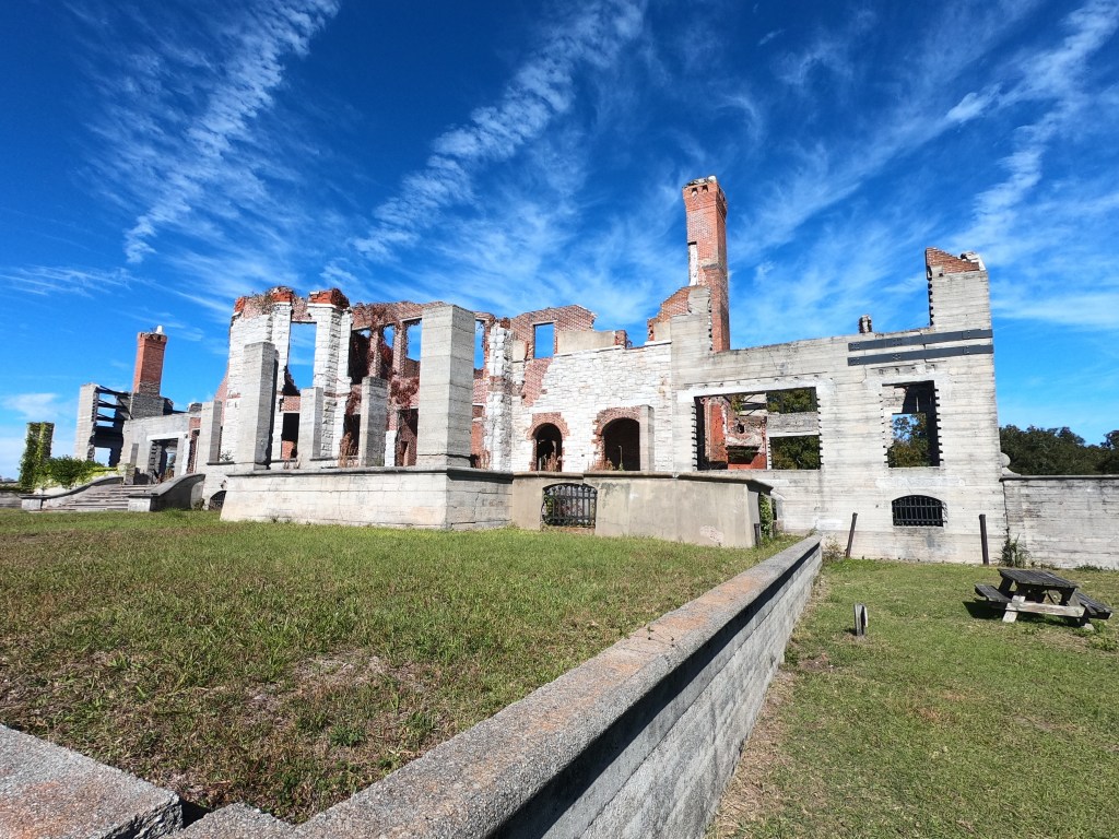 After leaving Jekyll, we stopped at Cumberland Island, about 25 miles south of Jekyll. Cumberland has similar beaches and terrain, but it’s a national park. It used to be the opulent estate of the Carnegie family in the late 1800’s and into the early 1900’s. The property had a giant mansion and a whole village of out buildings and residences. Apparently, in the 1950’s, one of the property managers caught someone poaching on the island and reported the misdeed to authorities. A week later, the buildings were burned to the ground and the Carnegie’s yacht was found riddled with shot gun holes. Interesting.